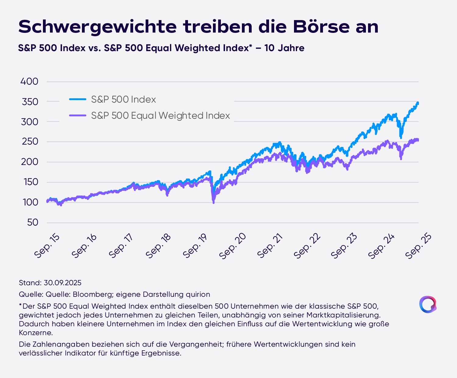 In vielen Börsenindizes dominieren die Schwergewichte gerade besonders stark. Zum Beispiel im S&P 500: Da haben die 10 Top-Aktien in diesem Jahr zeitweise schon ein Gewicht von rund 40 Prozent erreicht. Wir schauen auf die Folgen für die Anlagestrategie.